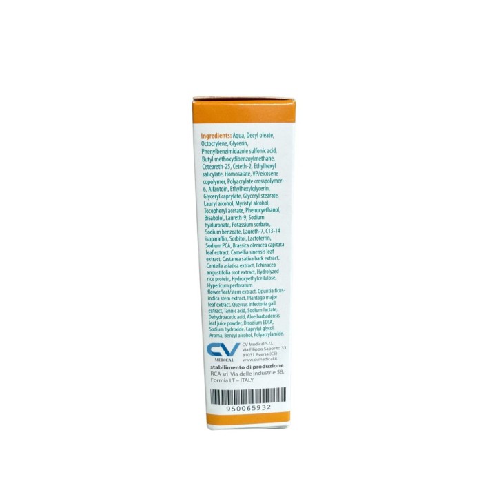 Aqua, Decyl oleate, Octocrylene, Glycerin, Phenylbenzimidazole sulfonic acid, Butyl methoxydibenzoy/methane, Ceteareth-25, Ceteth-2, Ethylhexyl salicylate, Homosalate, VP/eicosene copolymer, Polyacrylate crosspolymer 6, Allantoin, Ethylhexylglycerin, Glyceryl caprylate, Glyceryl stearate, Lauryl alcohol, Myristyl alcohol, Tocopheryl acetate, Phenoxyethanol, Bisabolol, Laureth-9, Sodium hyaluronate, Potassium sorbate, Sodium benzoate, Laureth-7, C13-14 isoparaffin, Sorbitol, Lactoferrin, Sodium PCA, Brassica oleracea capitata leaf extract, Camellia sinensis leaf extract, Castanea sativa bark extract, Centella asiatica extract, Echinacea angustifolia root extract, Hydrolyzed rice protein, Hydroxyethylcellulose, Hypericum perforatum flower/leaf/stem extract, Opuntia ficus indica stem extract, Plantago major leaf extract, Quercus infectoria gall extract, Tannic acid, Sodium lactate, Dehydroacetic acid, Aloe barbadensis leaf juice powder, Disodium EDTA, Sodium hydroxide, Caprylyl glycol, Aroma, Benzyl alcohol, Polyacrylamide.