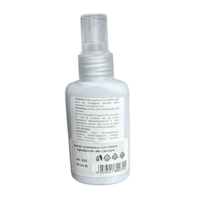 Spray ecologico al geranio e citronella, indicato per i bambini e le pelli più sensibili.
