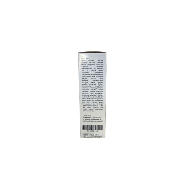 Aqua, Glycerin, Glyceryl stearate, PEG-100 stearate, Prunus amygdalus dulcis oil, Isopropyl myristate, Octyldodecanol, Olea europaea fruit oil, Sodium lauroyl sarcosinate, Dimethicone,Simmondsia chinensis seed oil, Imidazolidinyl urea, Tocopheryl acetate, Xanthan gum, Bisabolol, Phenoxyethanol, Decylene glycol, Sodium ascorbyl phosphate, Sodium benzotriazolyl butylphenol sulfonate, Ethylhexylglycerin, Potassium sorbate, Sodium benzoate, Sodium hydroxide, Disodium EDTA, Tetrasodium glutamate diacetate, Sodium metabisulfite, Buteth-3, Tributyl citrate, Parfum, Butyrospermum parkii butter, Aloe barbadensis leaf juice, Caprylyl glycol, Pentaerythrityl tetra-di-t-butyl